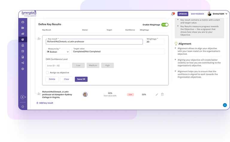 Synergita’s OKR to align its bigger and bolder strategy across company and individuals and Engage to coach and mentor the team to achieve targeted milestones."